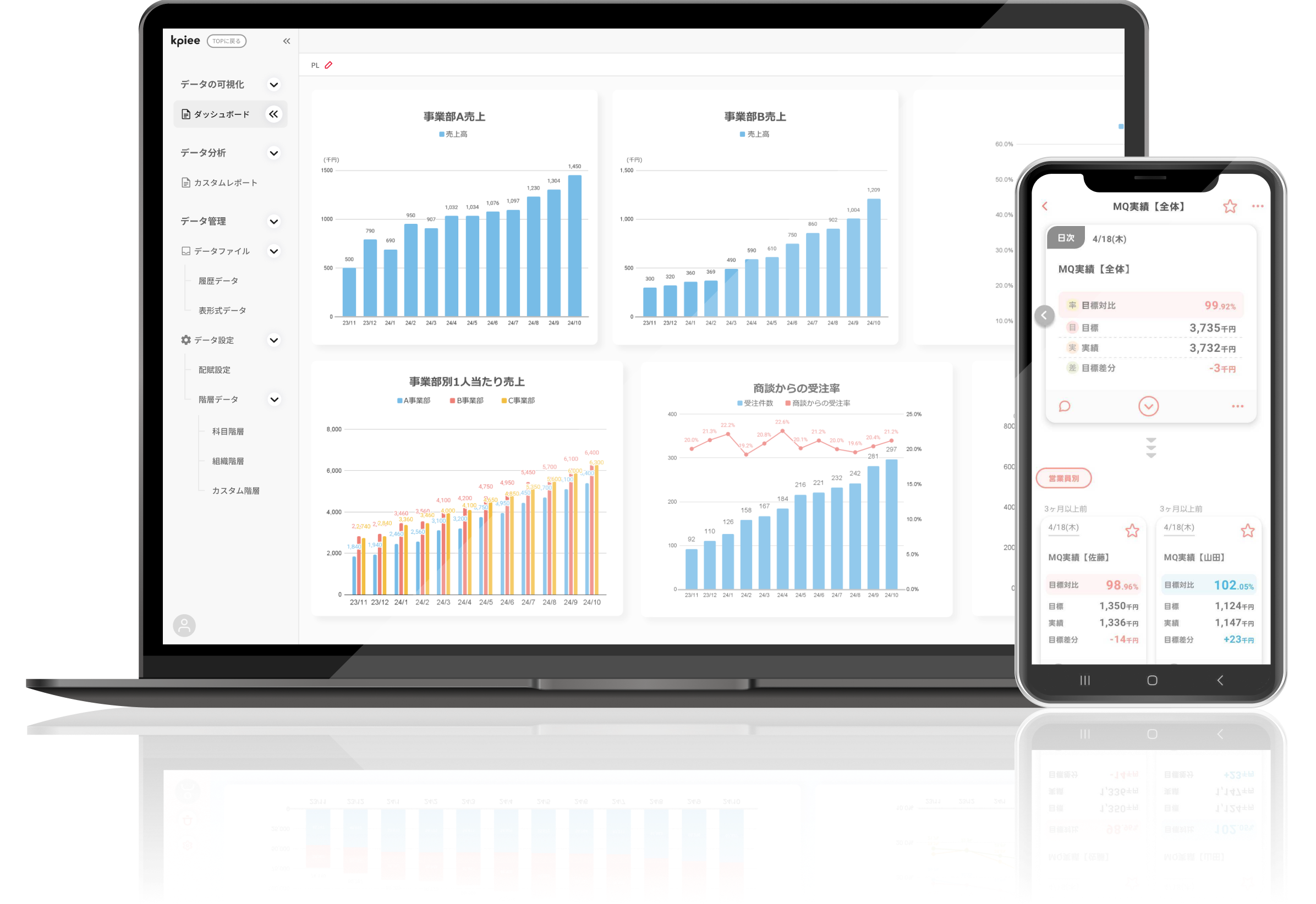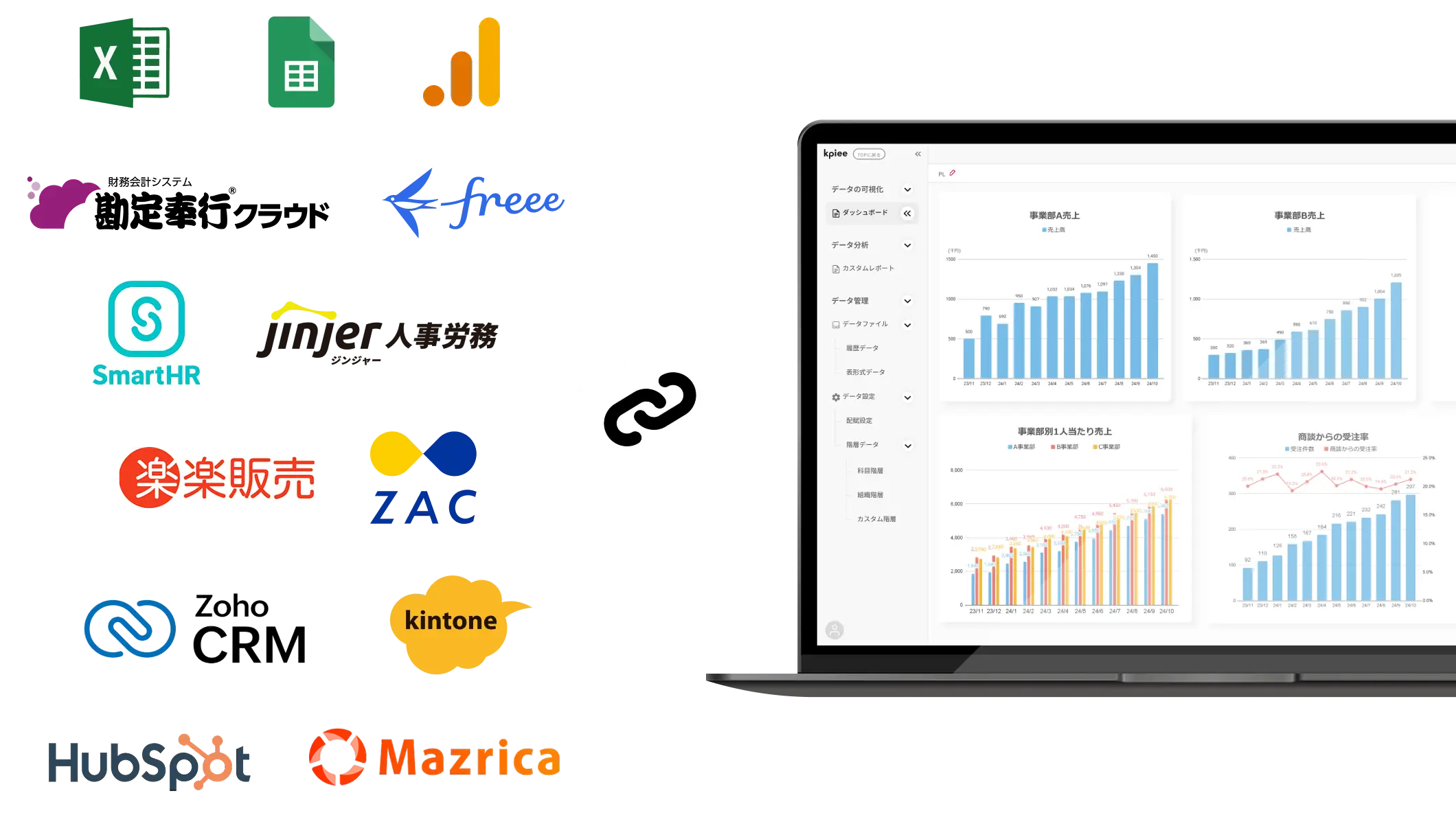 PLなどの会計データと、人時生産性といった事業KPIなど、
