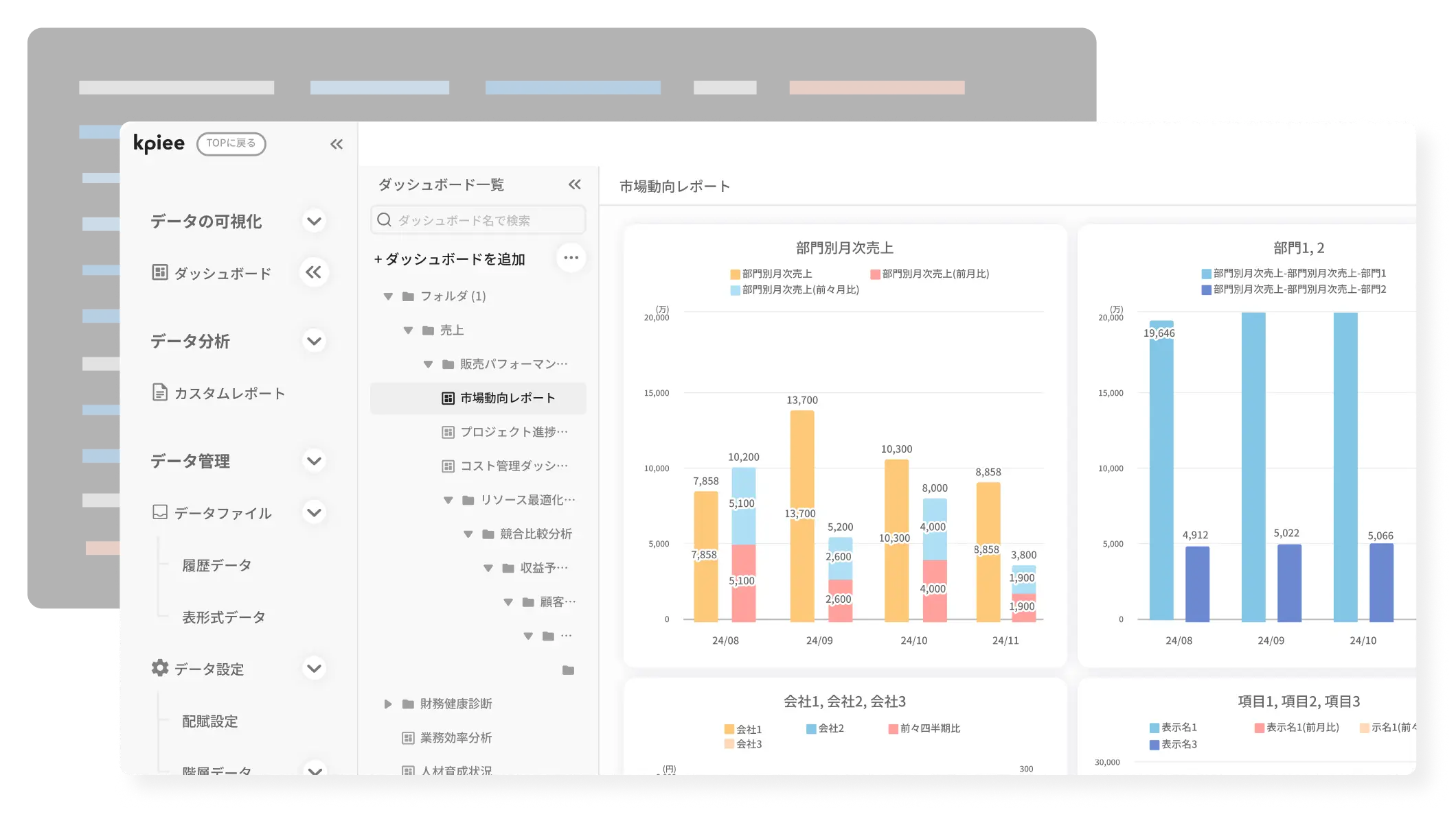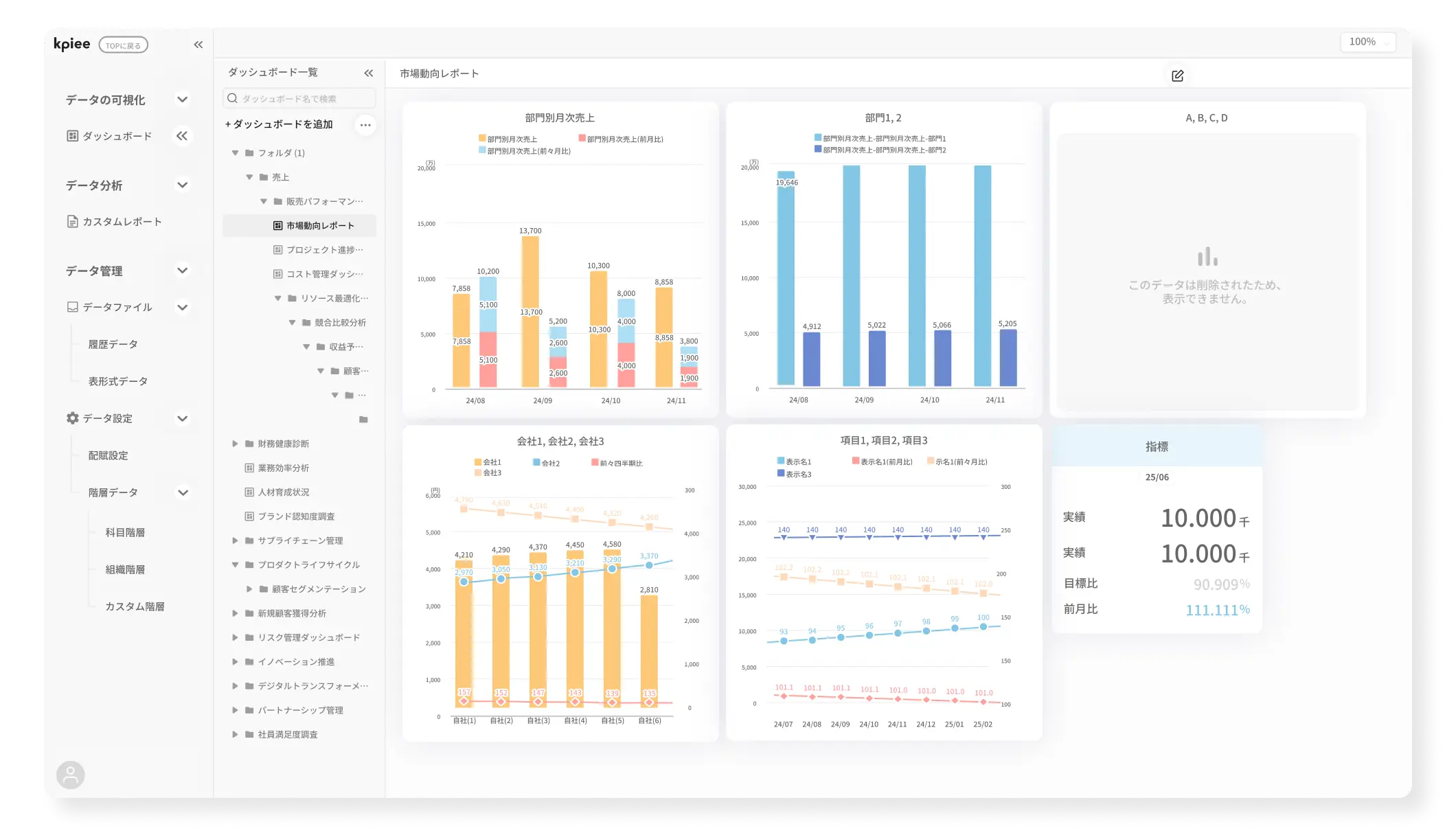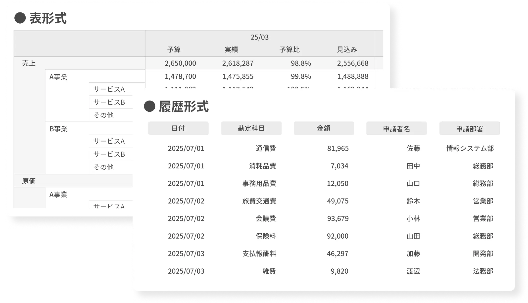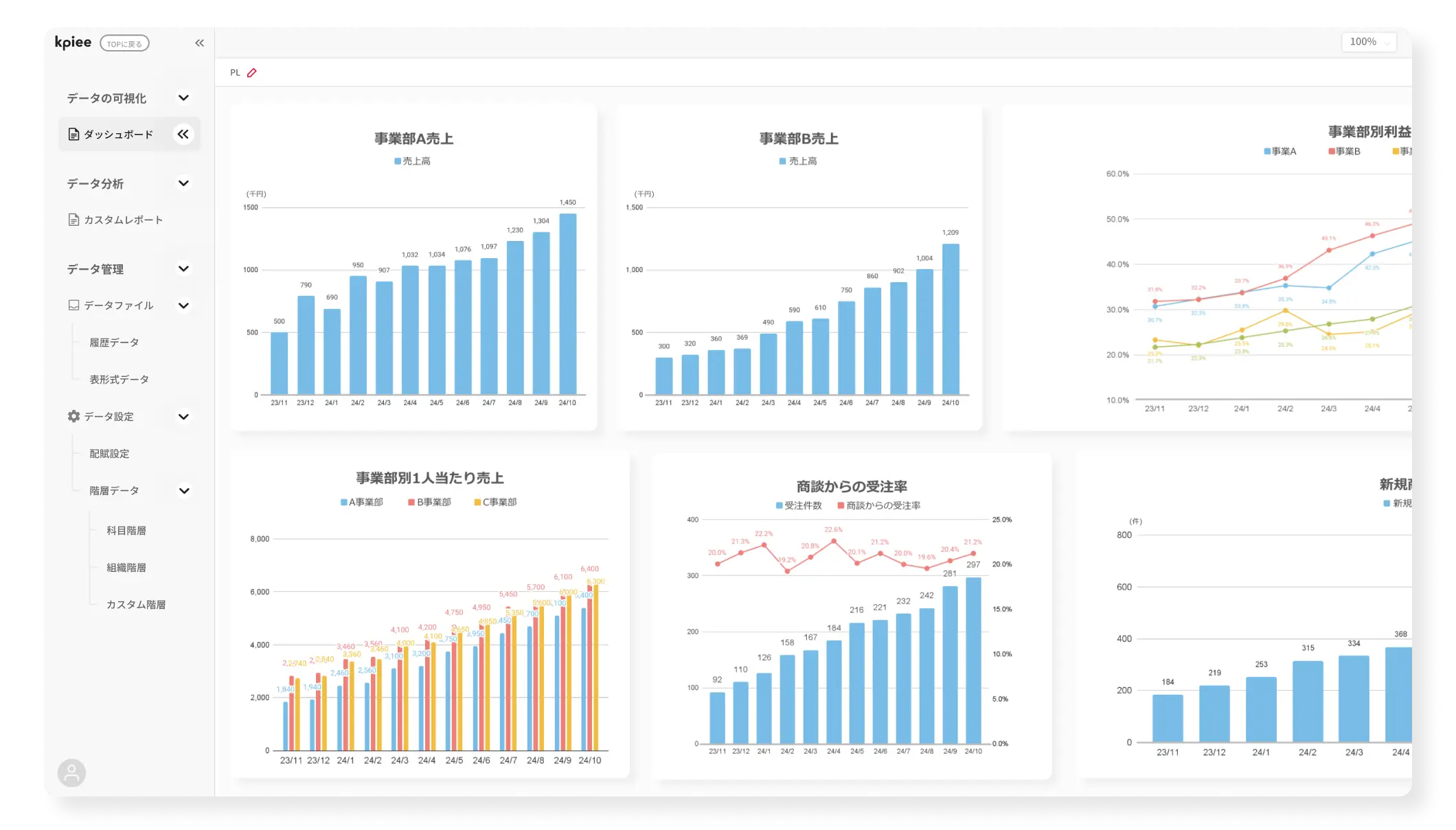 全社サマリから部門別PLまで、様々な切り口で経営状況を