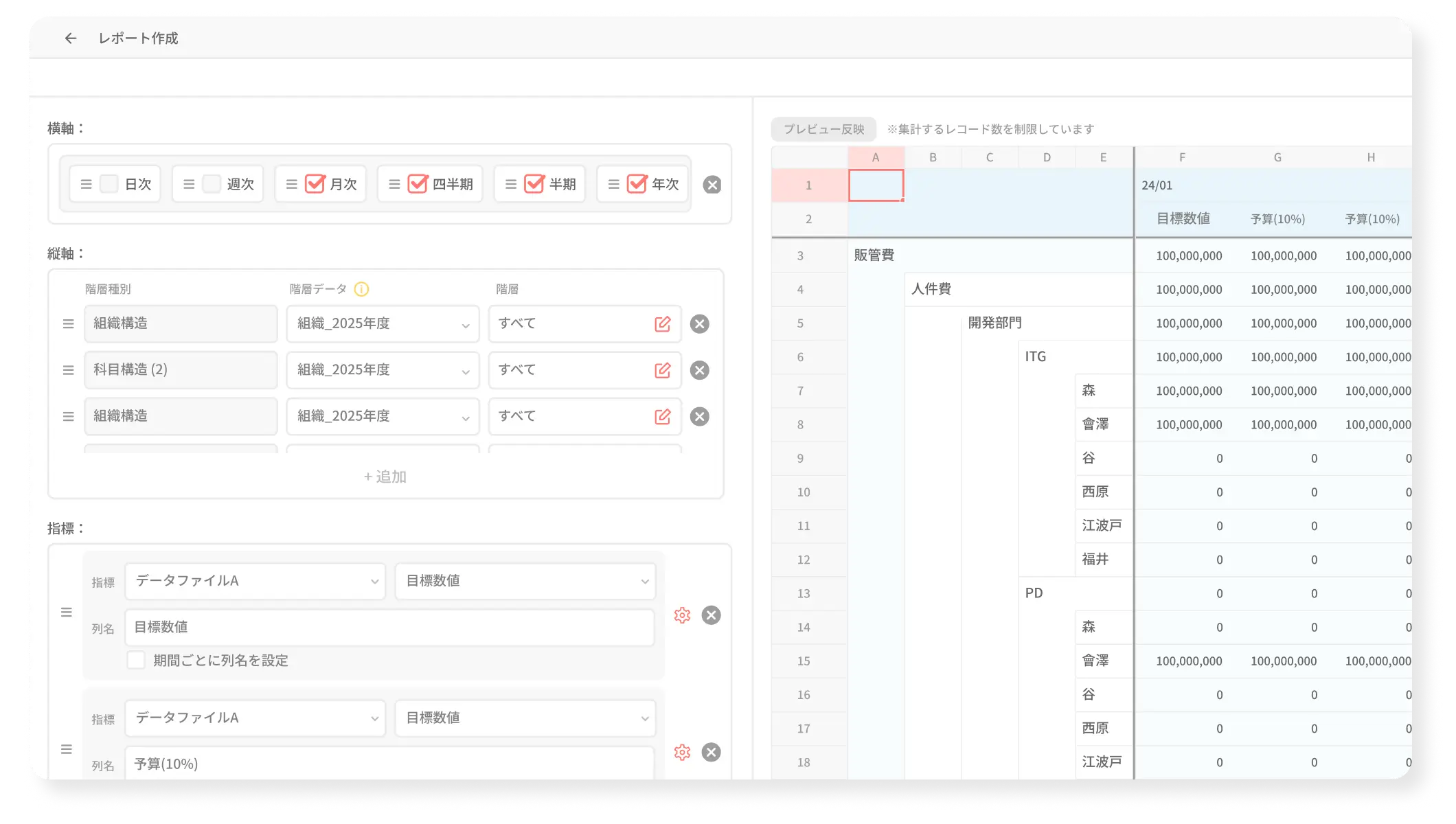 事業部別、製品別、担当者別など、分析の切り口(軸)を