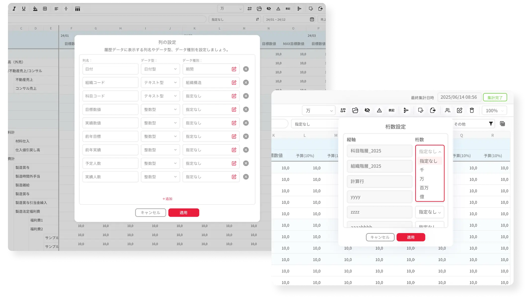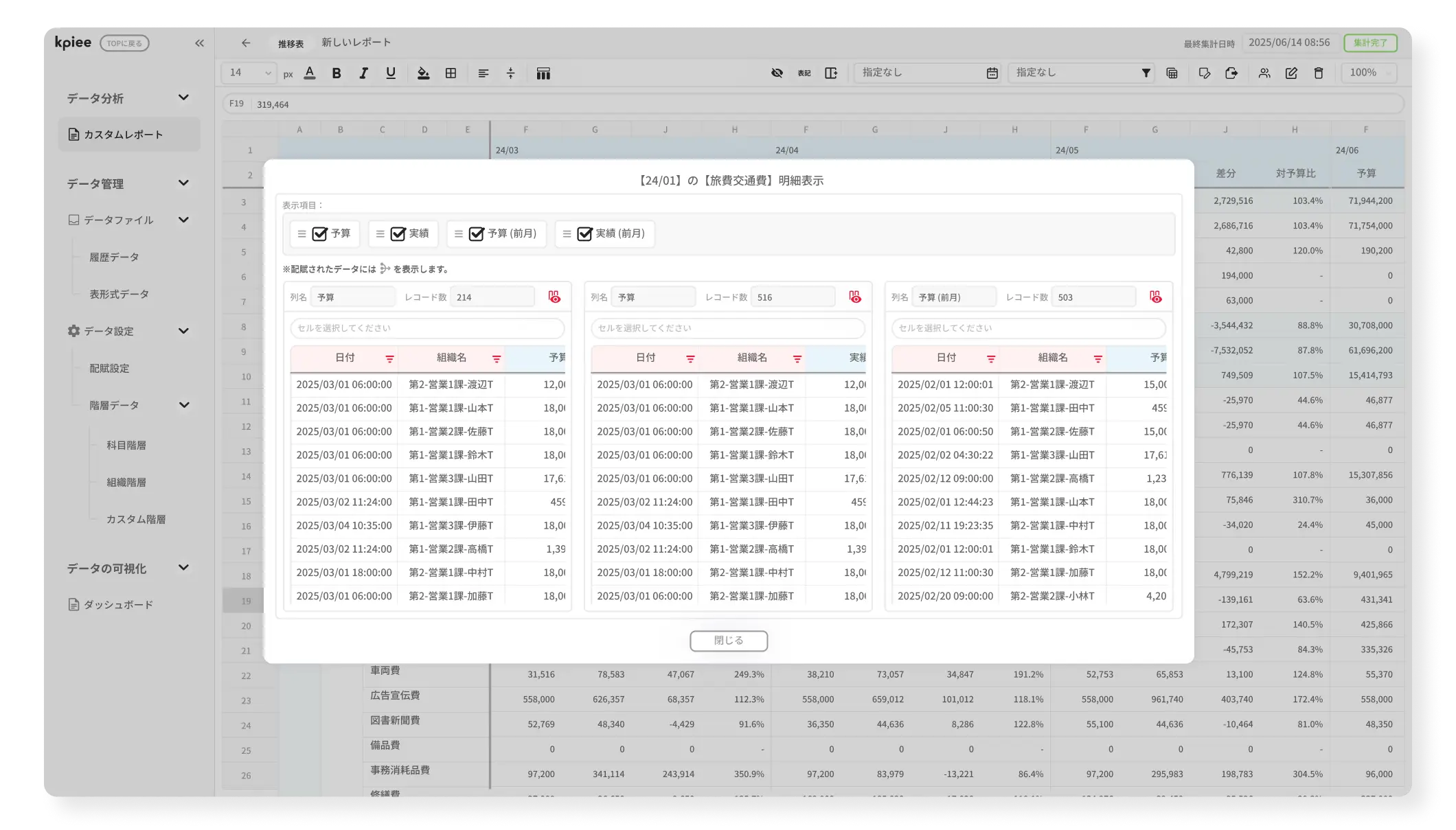 過去の実績などを画面上で確認しながら、新しい予算データなどを
