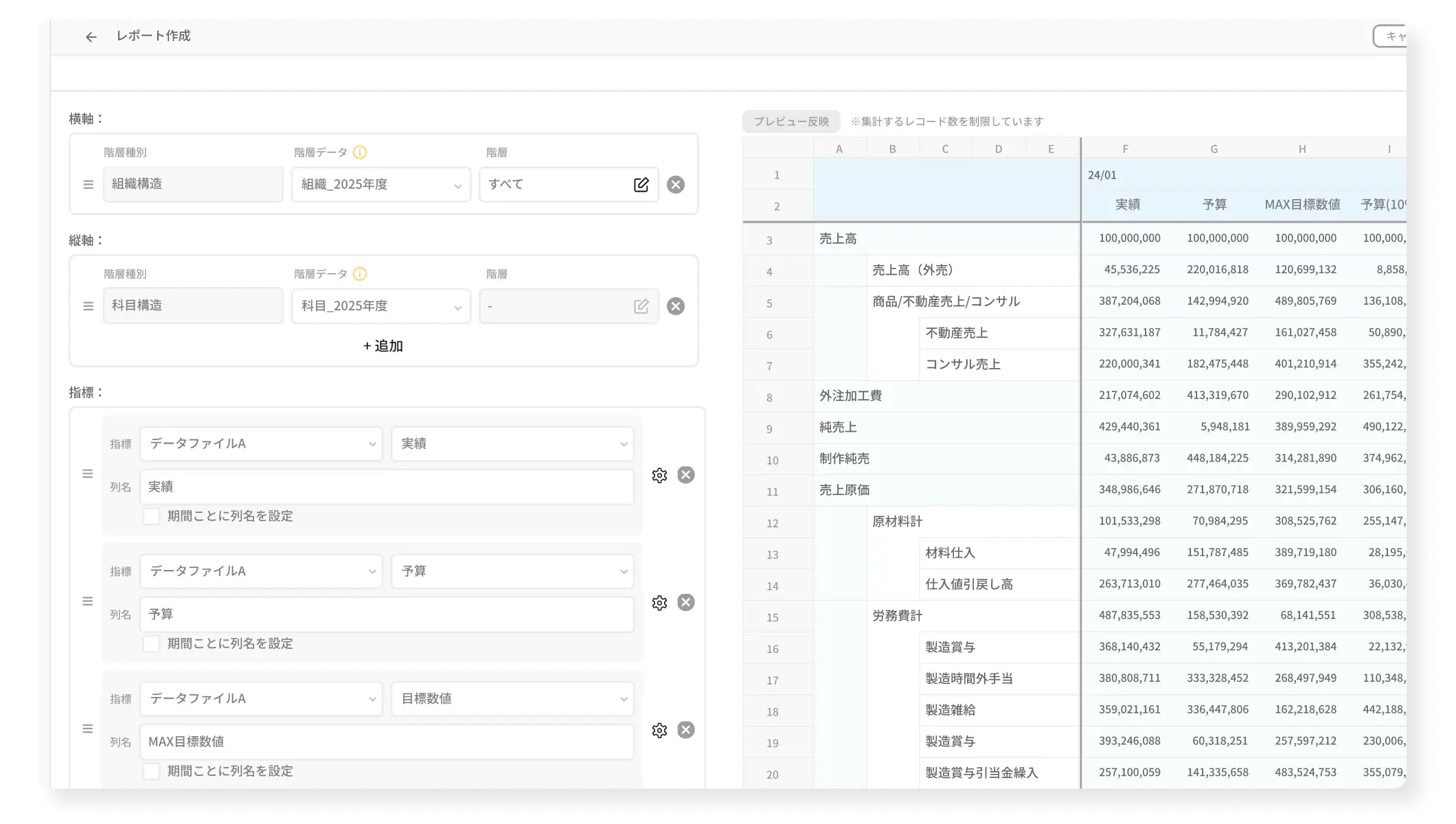 PLやBSといった財務諸表を、レポート形式だけでなく