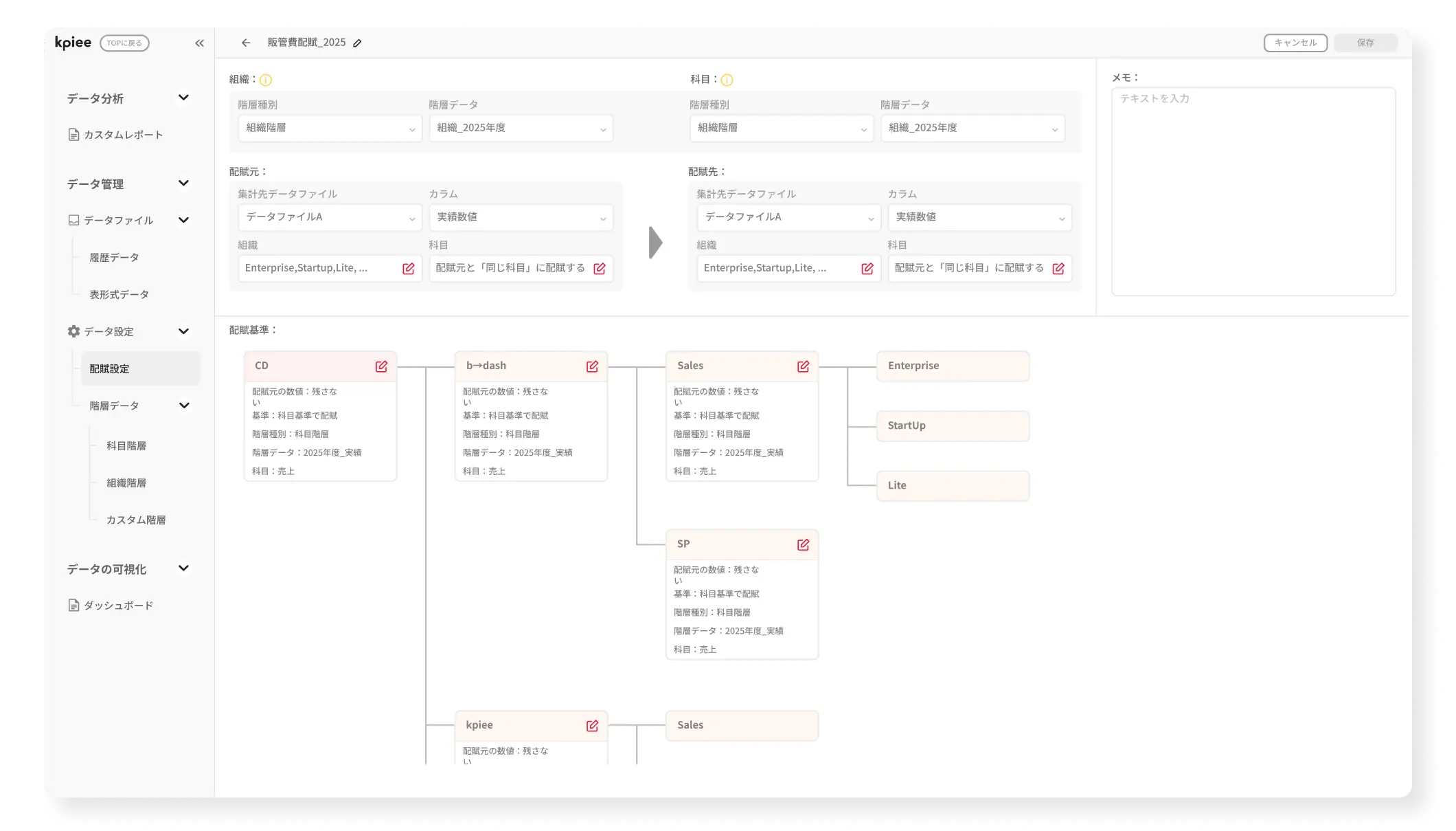任意のロジックに基づいて各事業部や部門に自動で配賦する処理を、