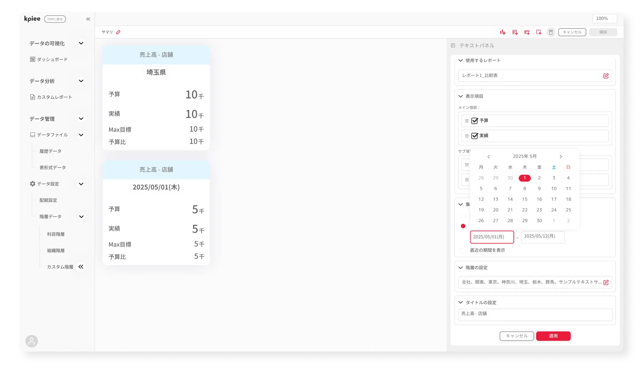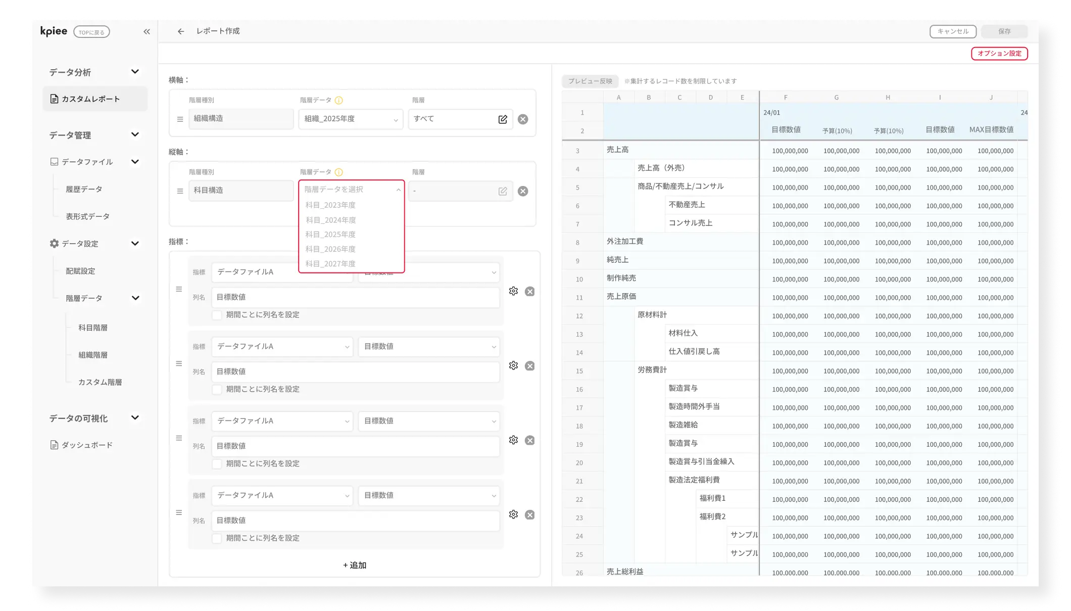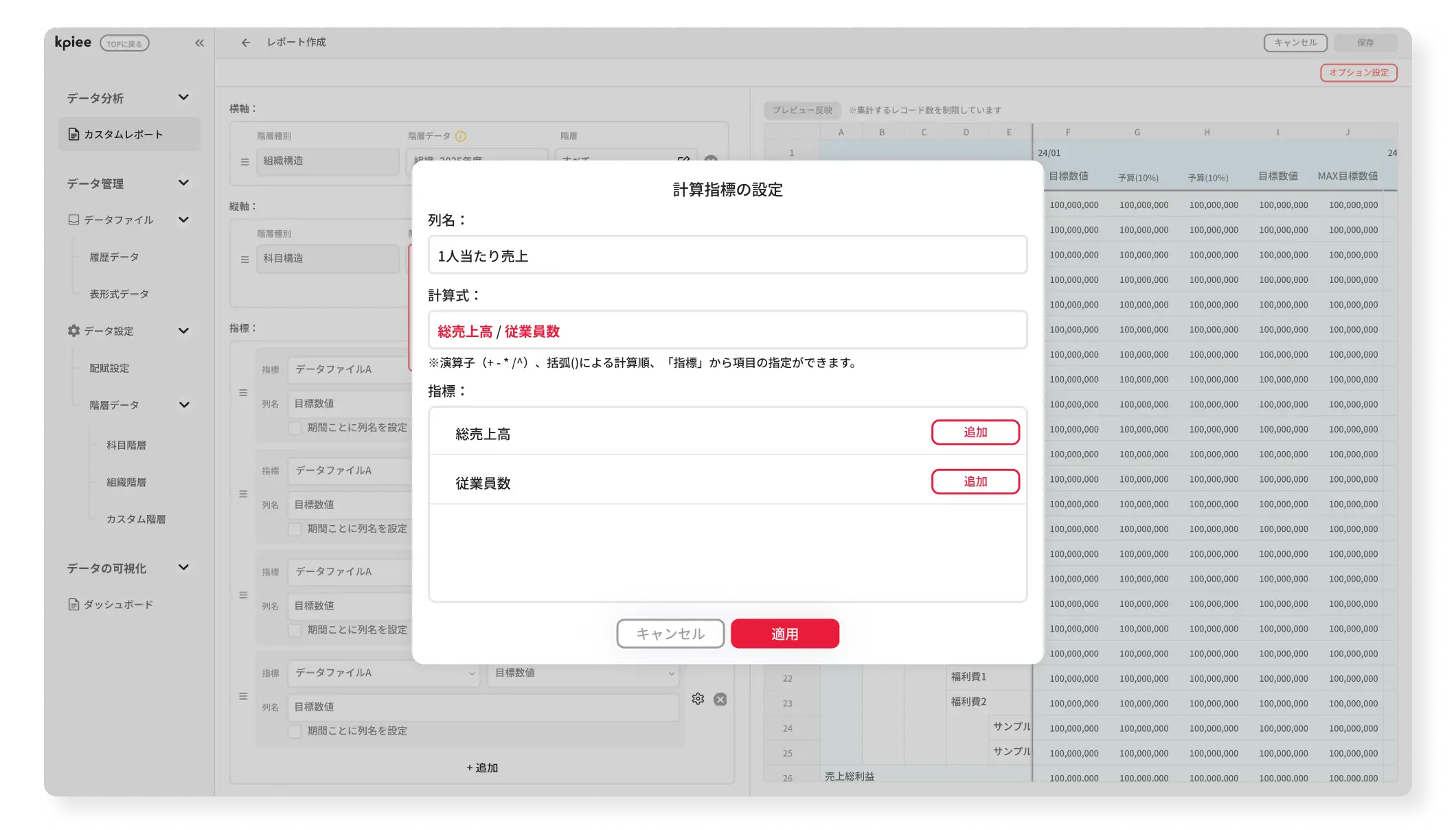 複数のデータを組み合わせた独自の計算指標(KPI)を、