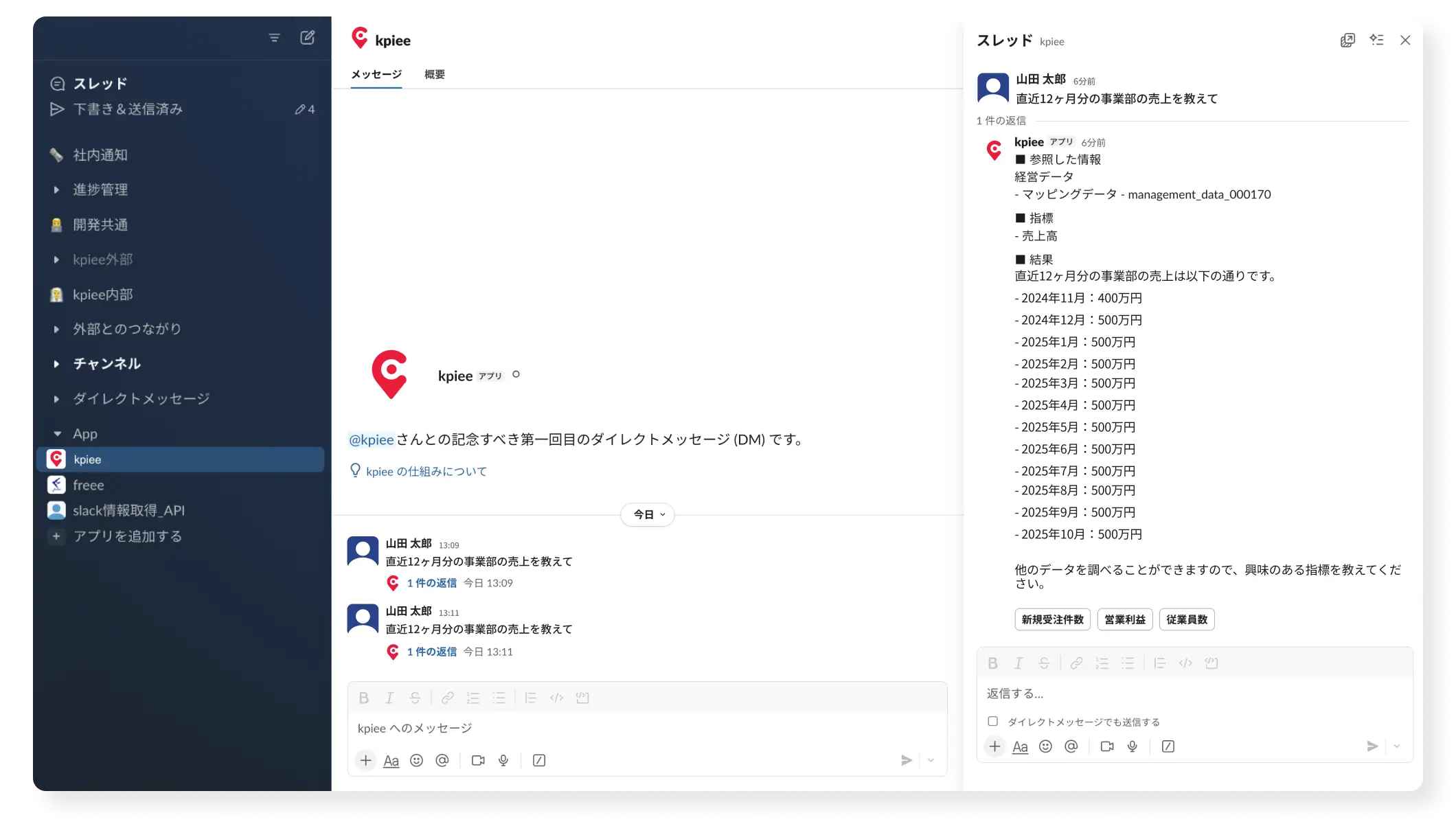 さらに経営データに関する質問にもAIが即座に回答するため、