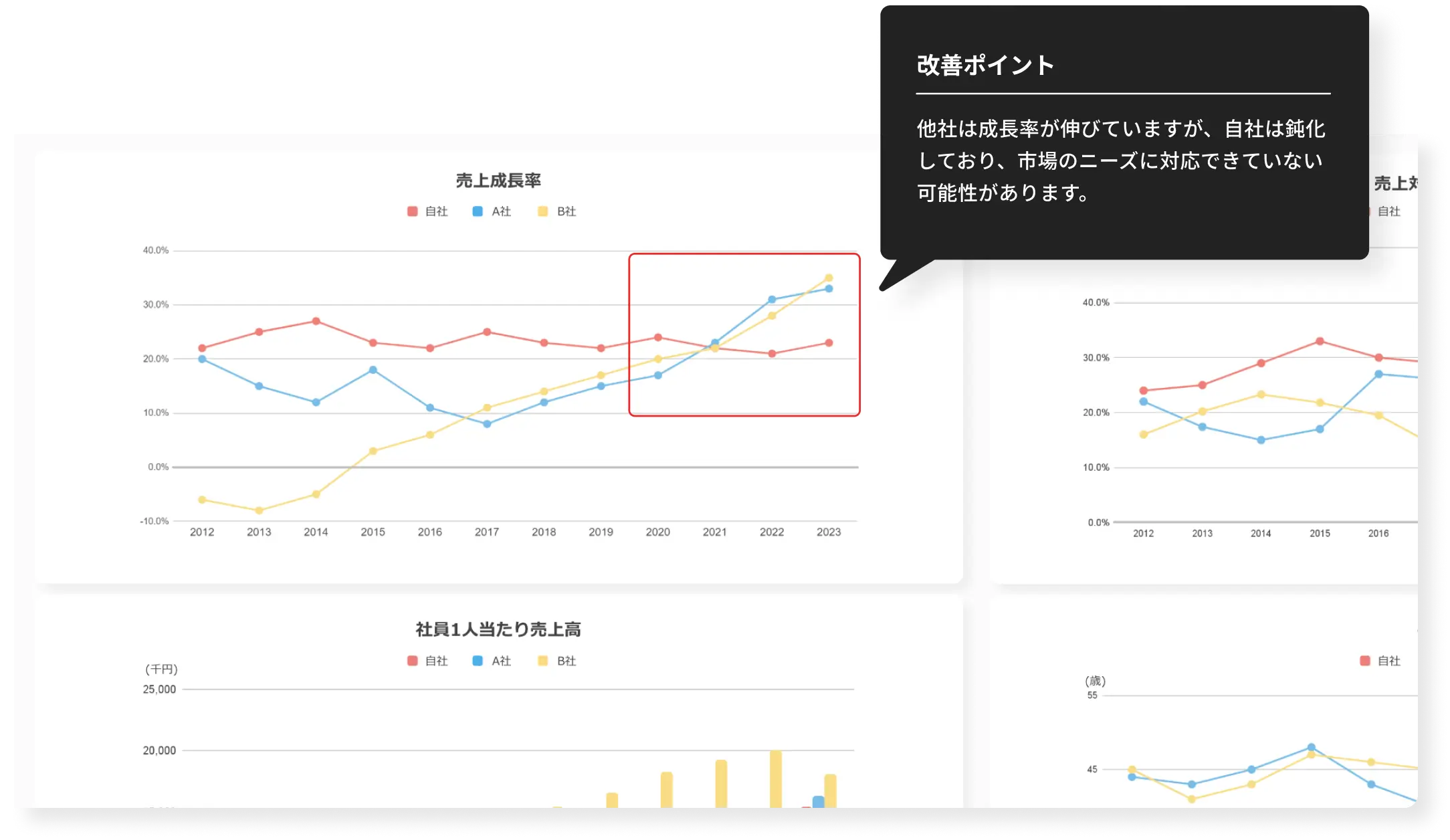 事業改善に繋がる示唆をAIが分析/抽出します。