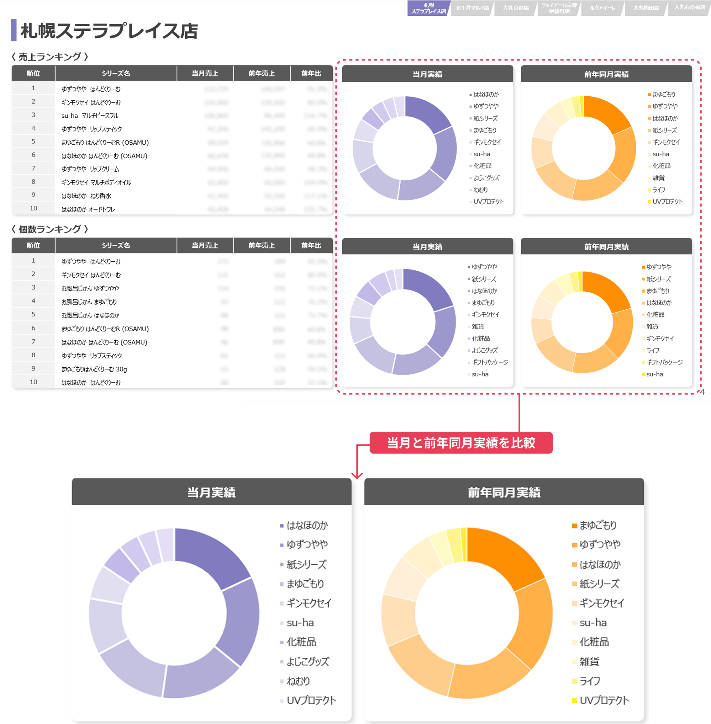 ‐店舗ごとに「商品別」の売上を詳細に可視化。
